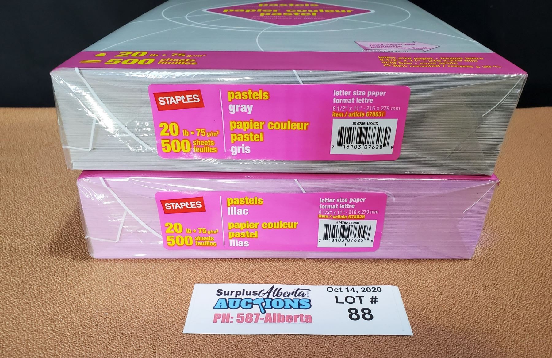 1 Packs of Staples Pastels Lilac & 1 Pack of Staples Pastels Gray 20 Lb 8.5" x 11" Letter Size Paper 500 Sheets per Pack