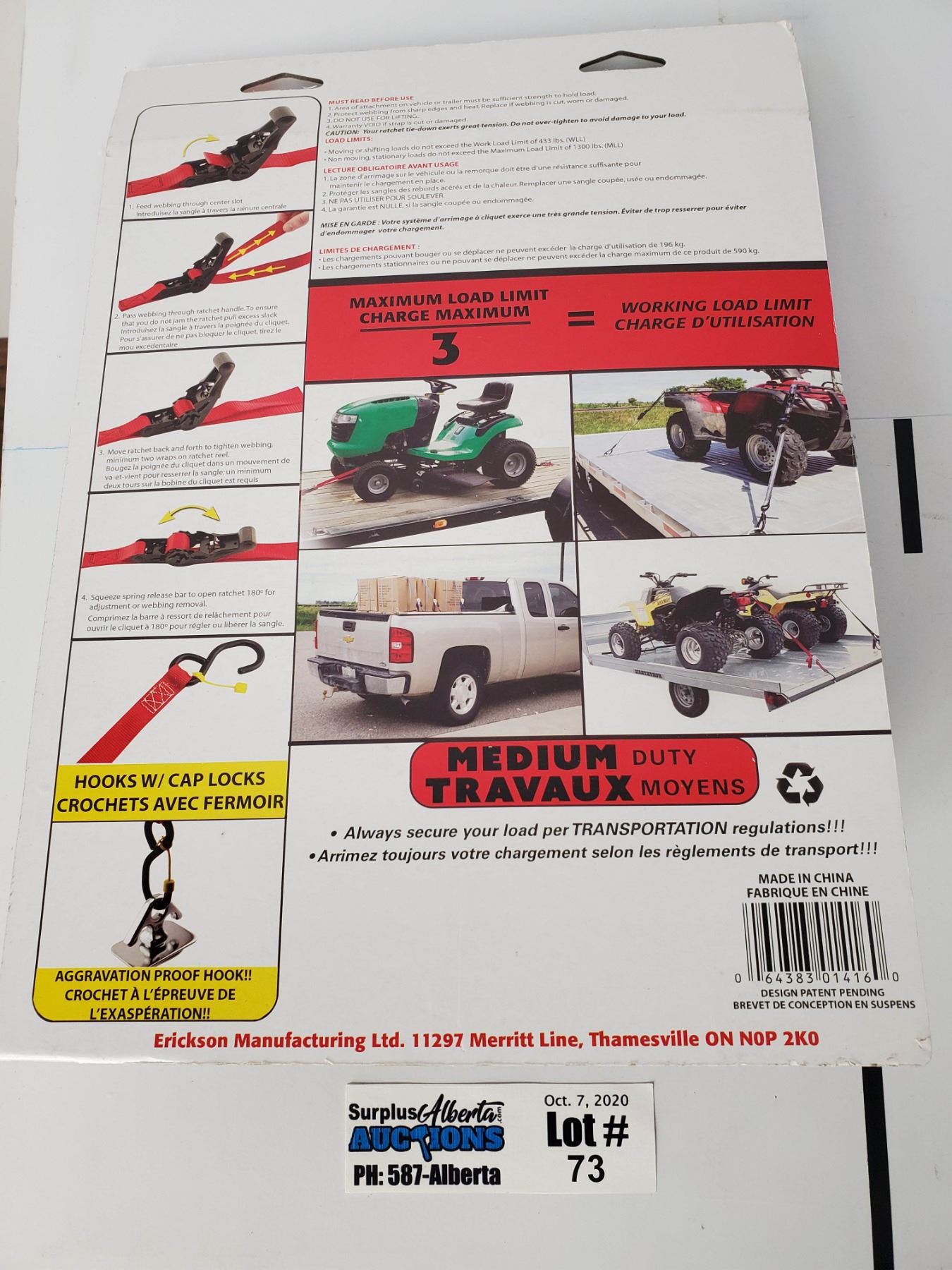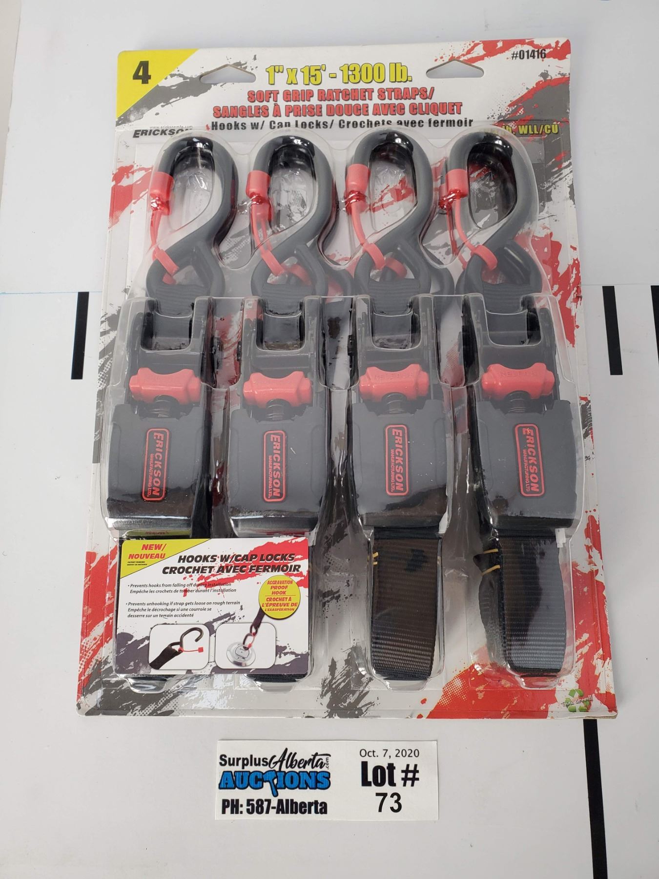 4 Pack of Erickson Manufacturing 1" x 15' 1300lb Soft Grip Rachet Straps - Unopened