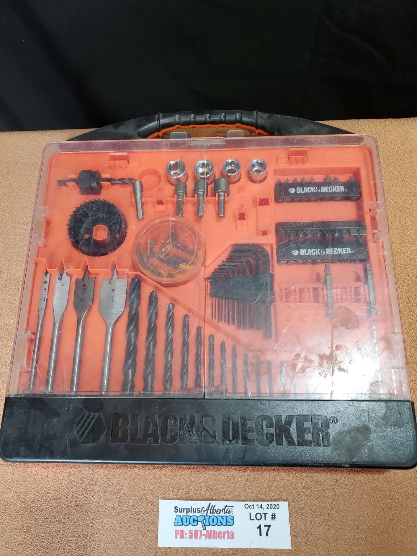 Black and Decker Drill Bit and Driver Set with some pieces missing as seen in photos