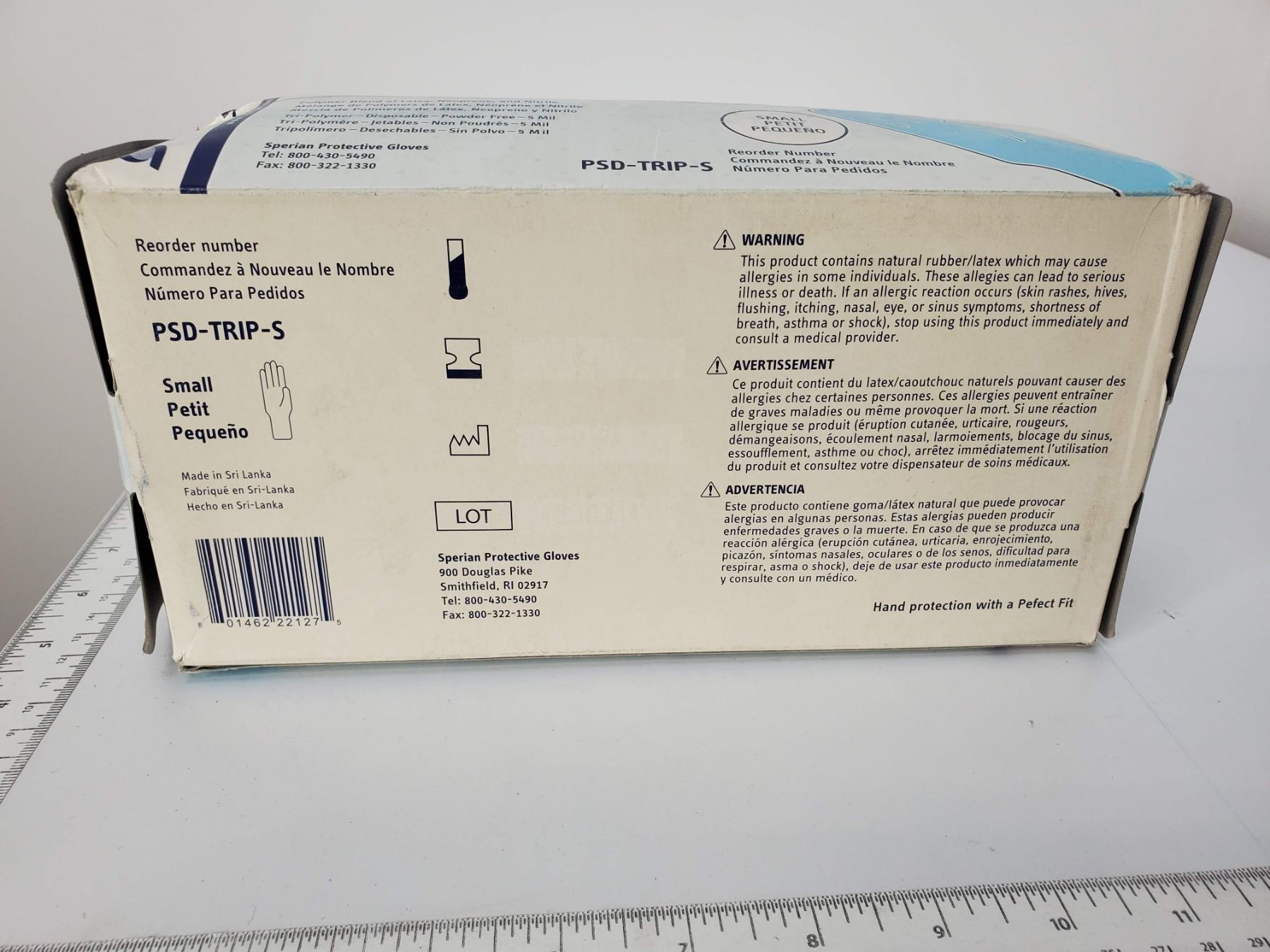 Box of 100 Size Small Sperian Disposable Tri-Polymer Gloves - Expired