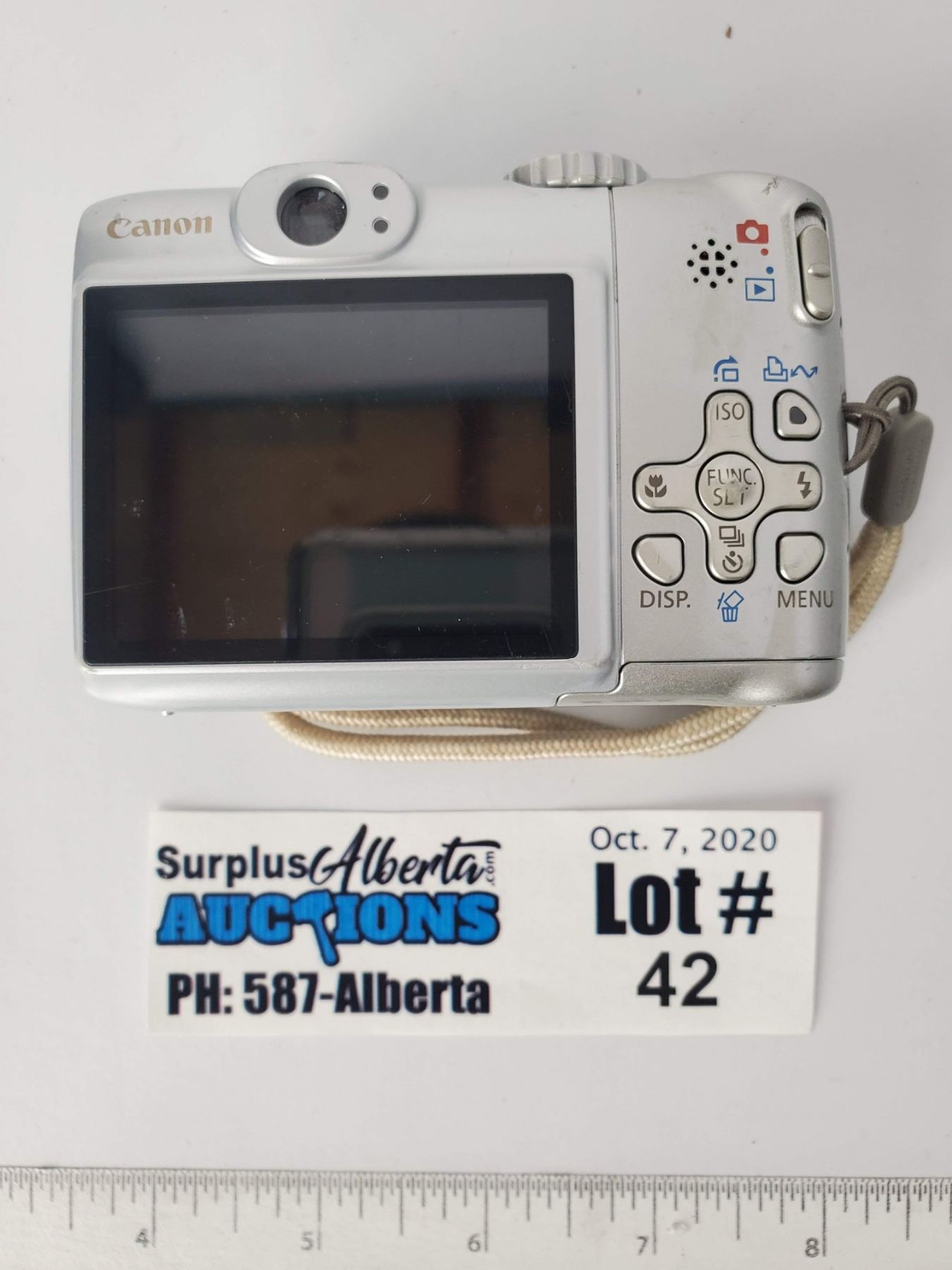 Canon Power Shot A580 8.0 Megapixel Digital Camera includes strap, but no battery or memory card. Unit is untested