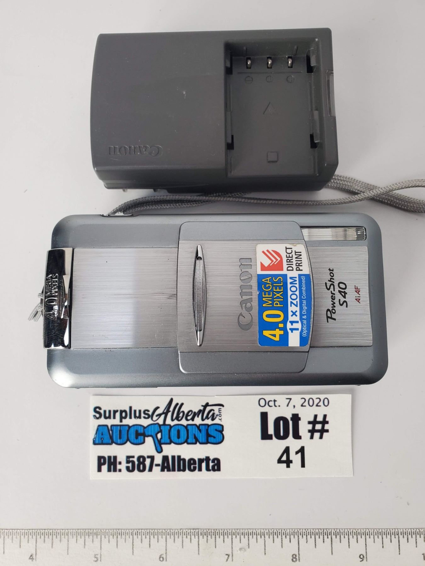Canon Power Shot S40 4.0 Megapixel Digital Camera with 11 time zoom comes with strap, Battery and Battery Charger, but no memory card. Unit is untested.