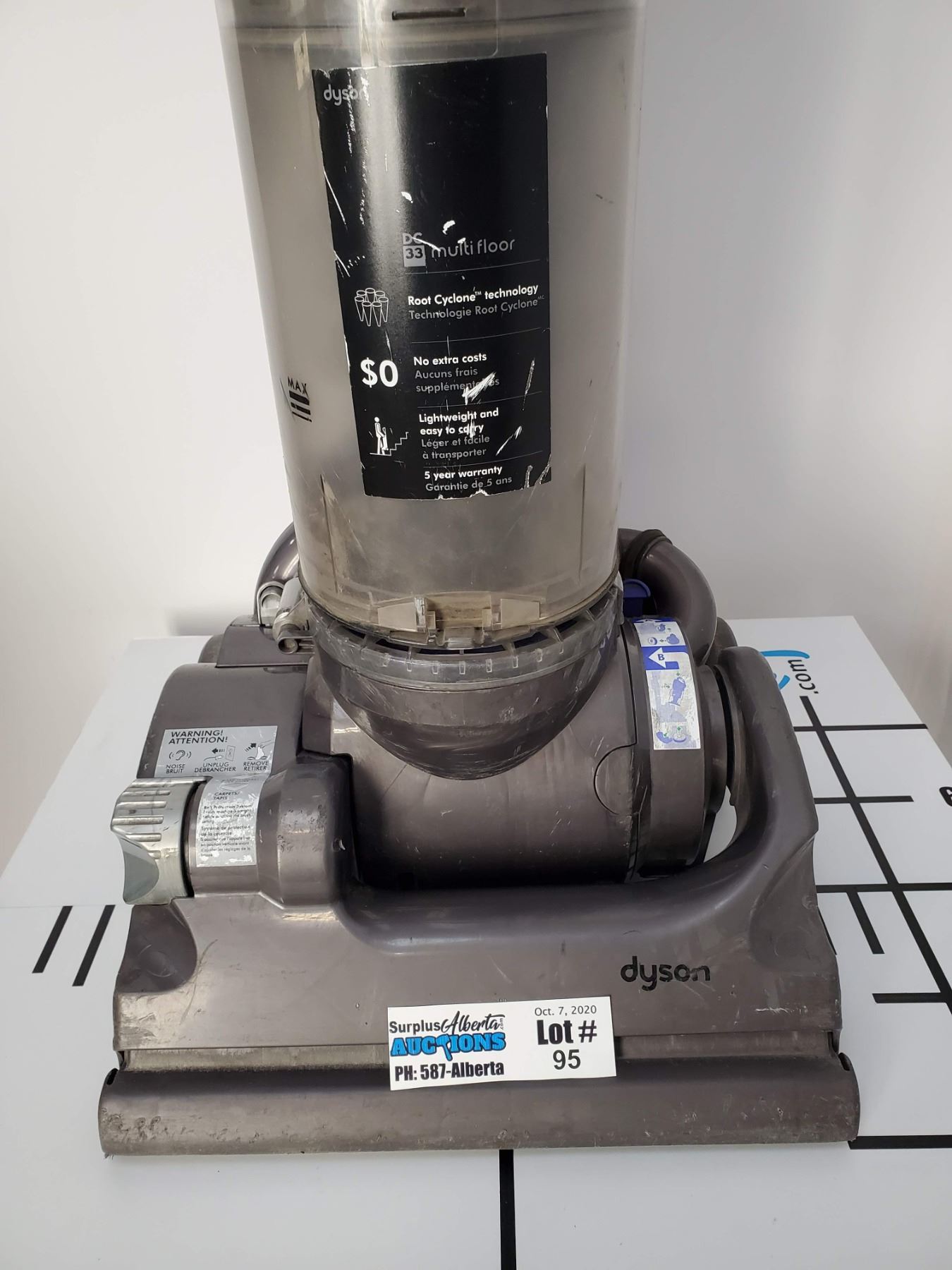 Dysone D33 Upright Vacuum Cleaner runs, but doesn't seem to have suction. Sold as is.