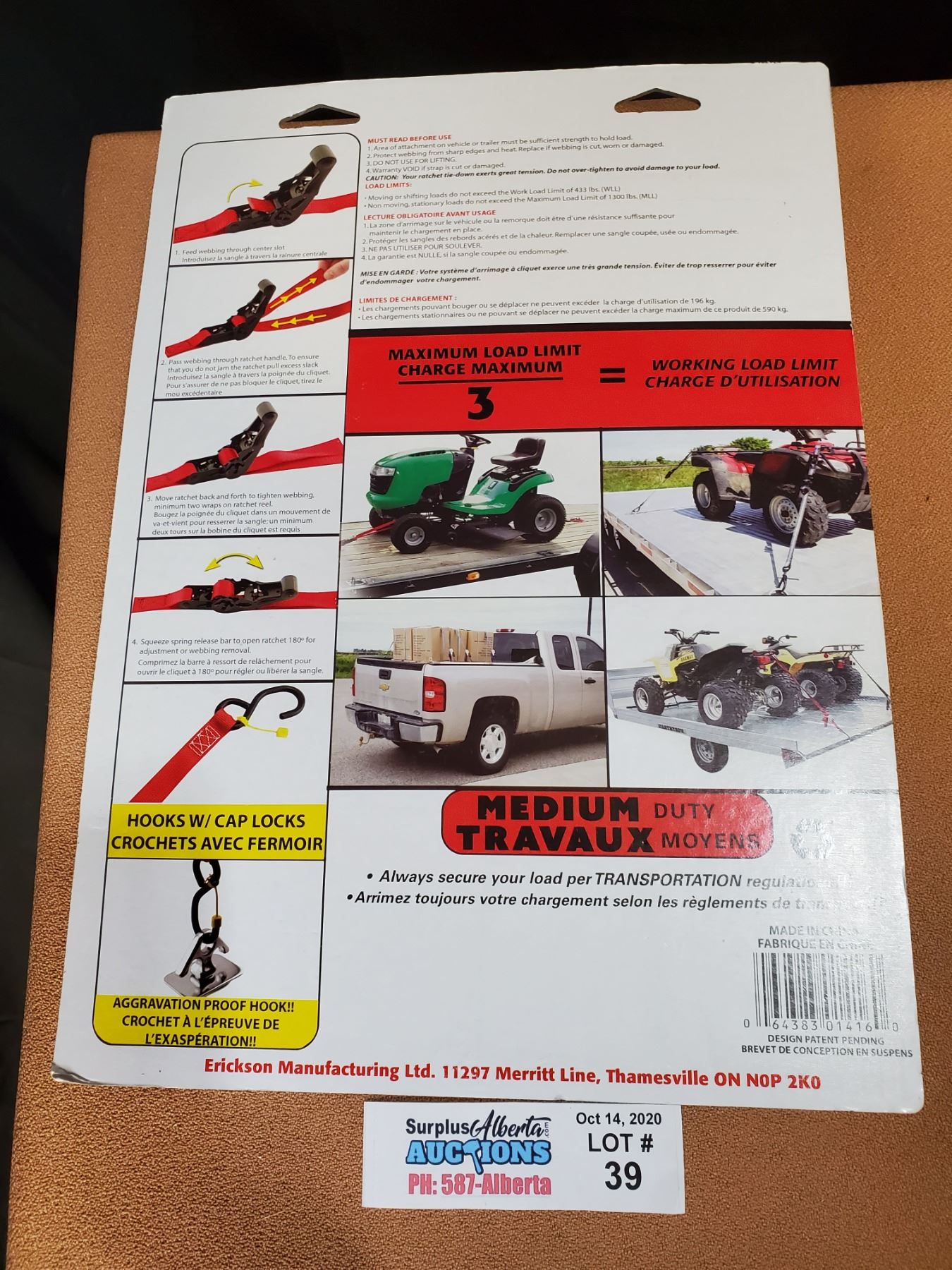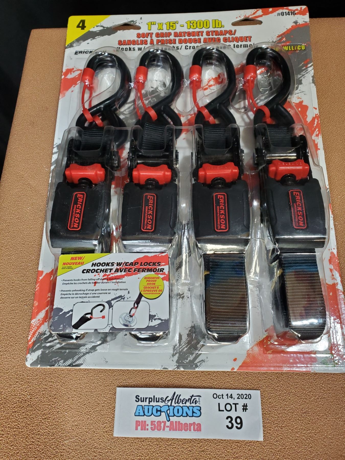 Erickson 4 pack of 1" x 15' 1300lb Soft Gip Ratchet Straps