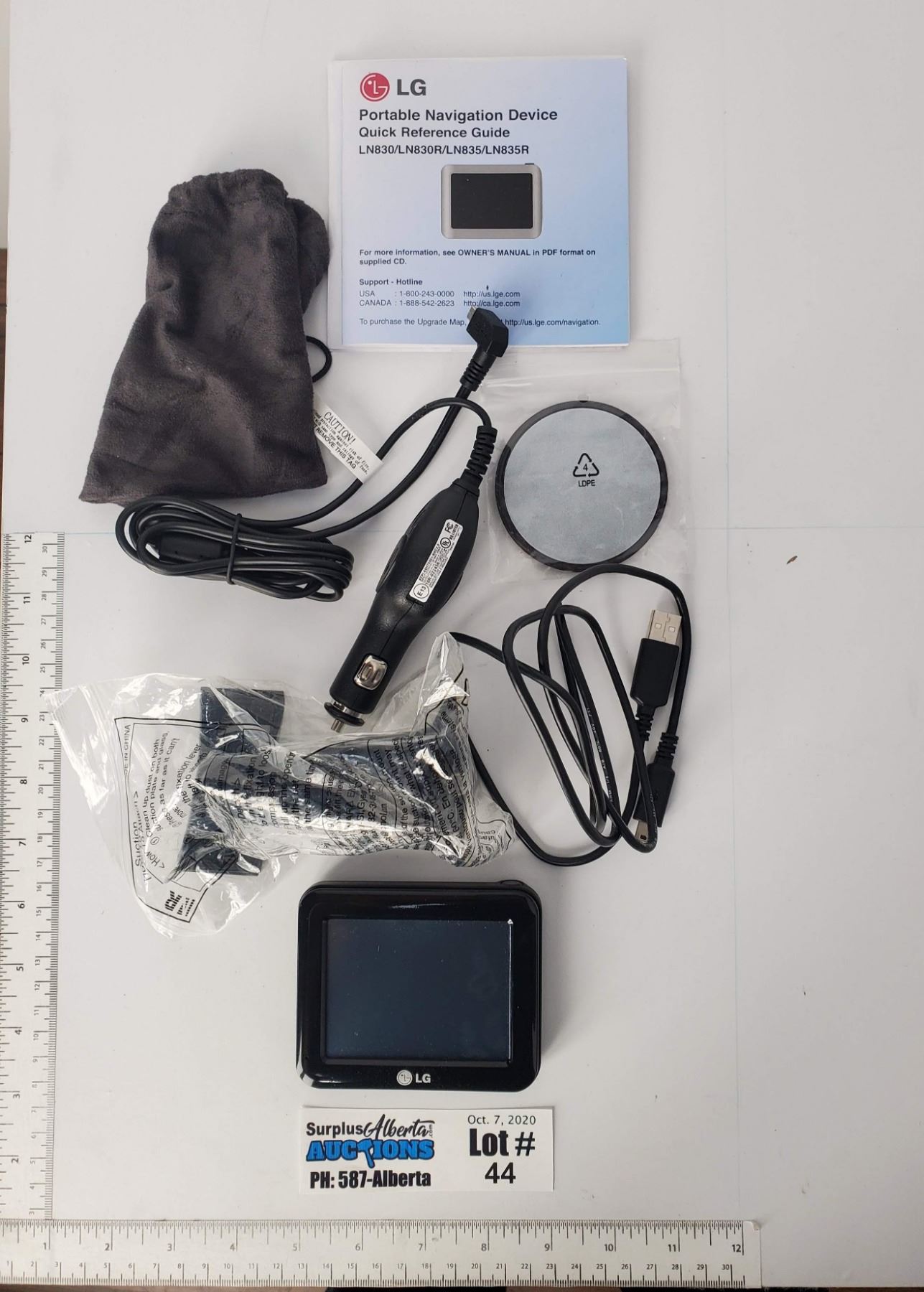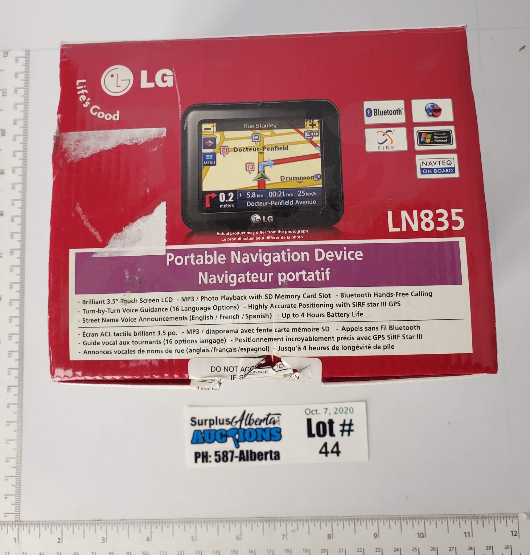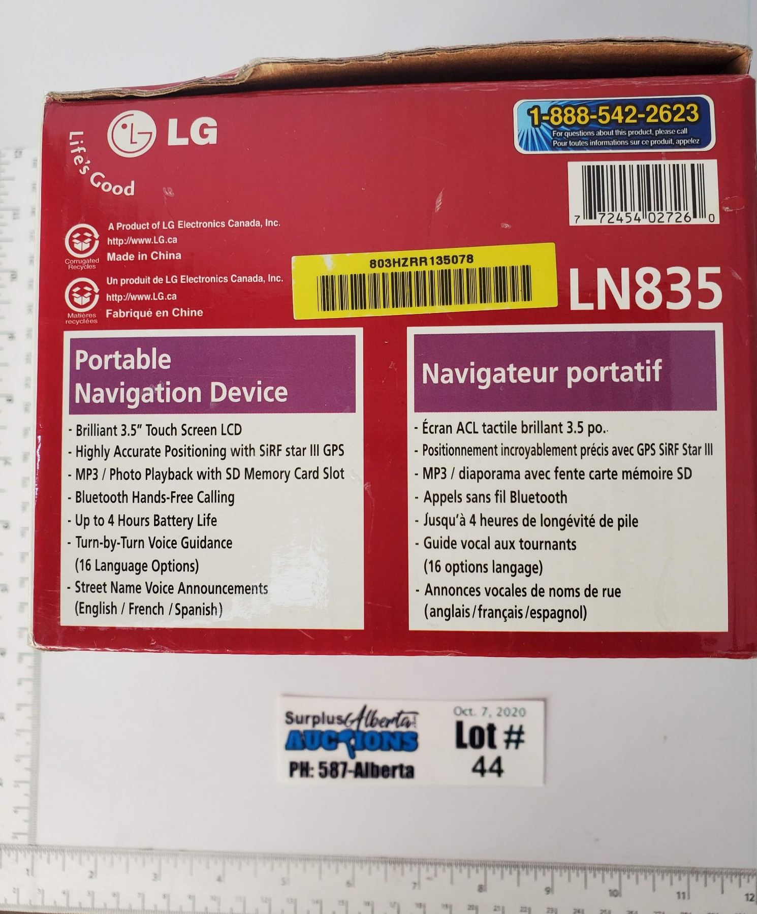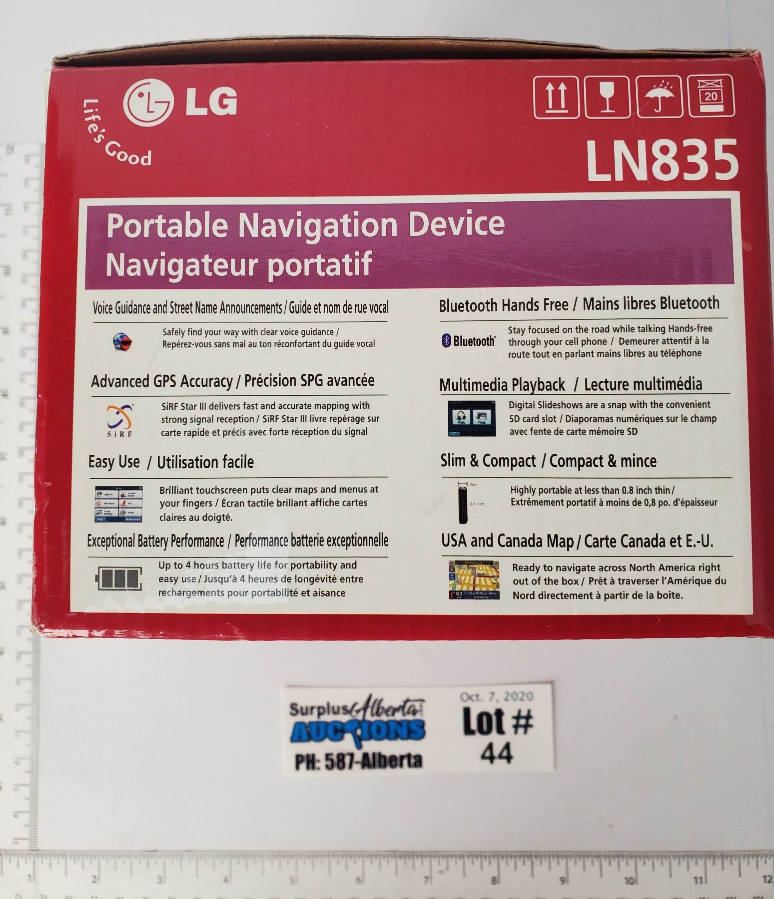 LG LN835 Portable Navigation Device includes box, manual, software disk, charging cable, suction cup window mount and softcase. Unit is in great condition and has been tested