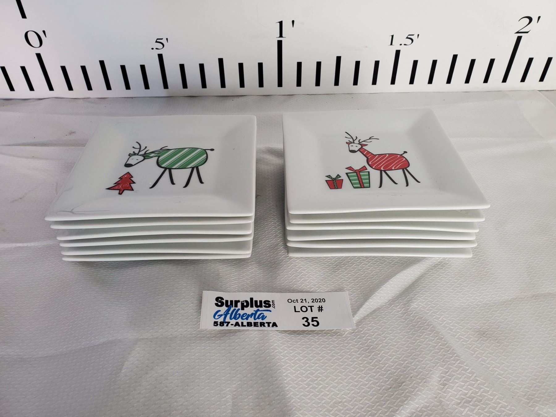 Lot of 12 Christmas Side Plates with Reindeer Pattern