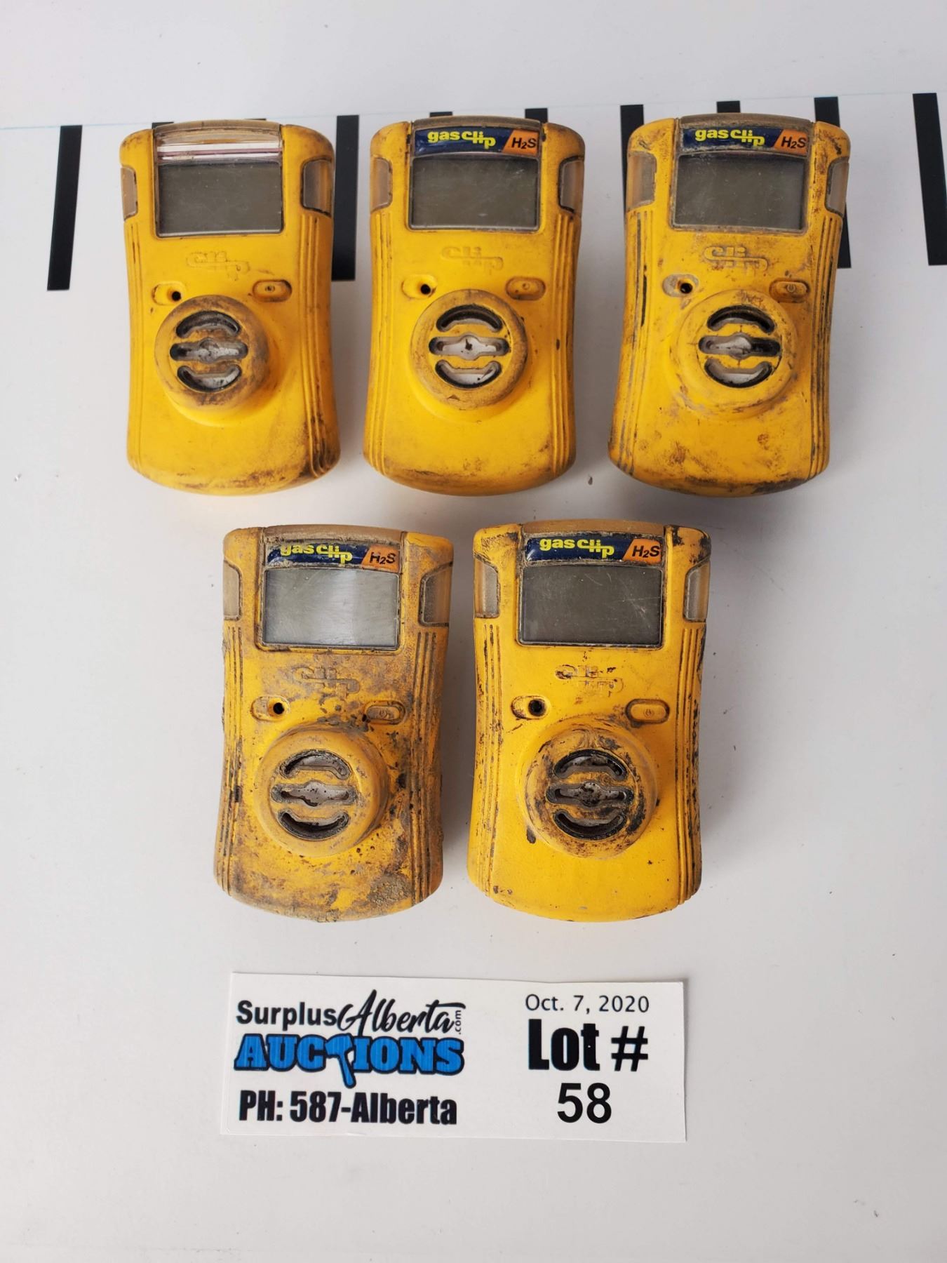 Lot of 5 Gas Clip Technologies H2S Hydrogen Sulfide Gas Detectors in Maximum Water Risistant Storage Case. Units are untested.