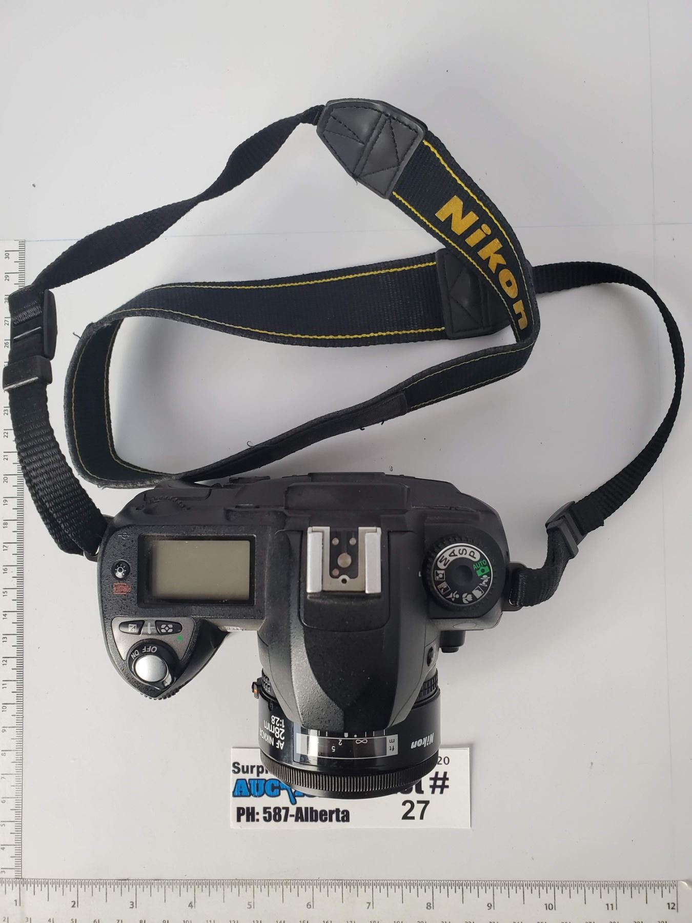 Nikon D70 with Nikon AF Nikkor 28mm 1:2.8 Lens which is untested with no battery. Lens appears to be in really good shape and free from major scratches.