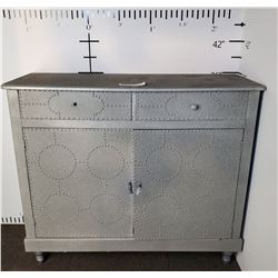 Silver Cabinet with 2 pull out drawers and 2 doors with inside storage.