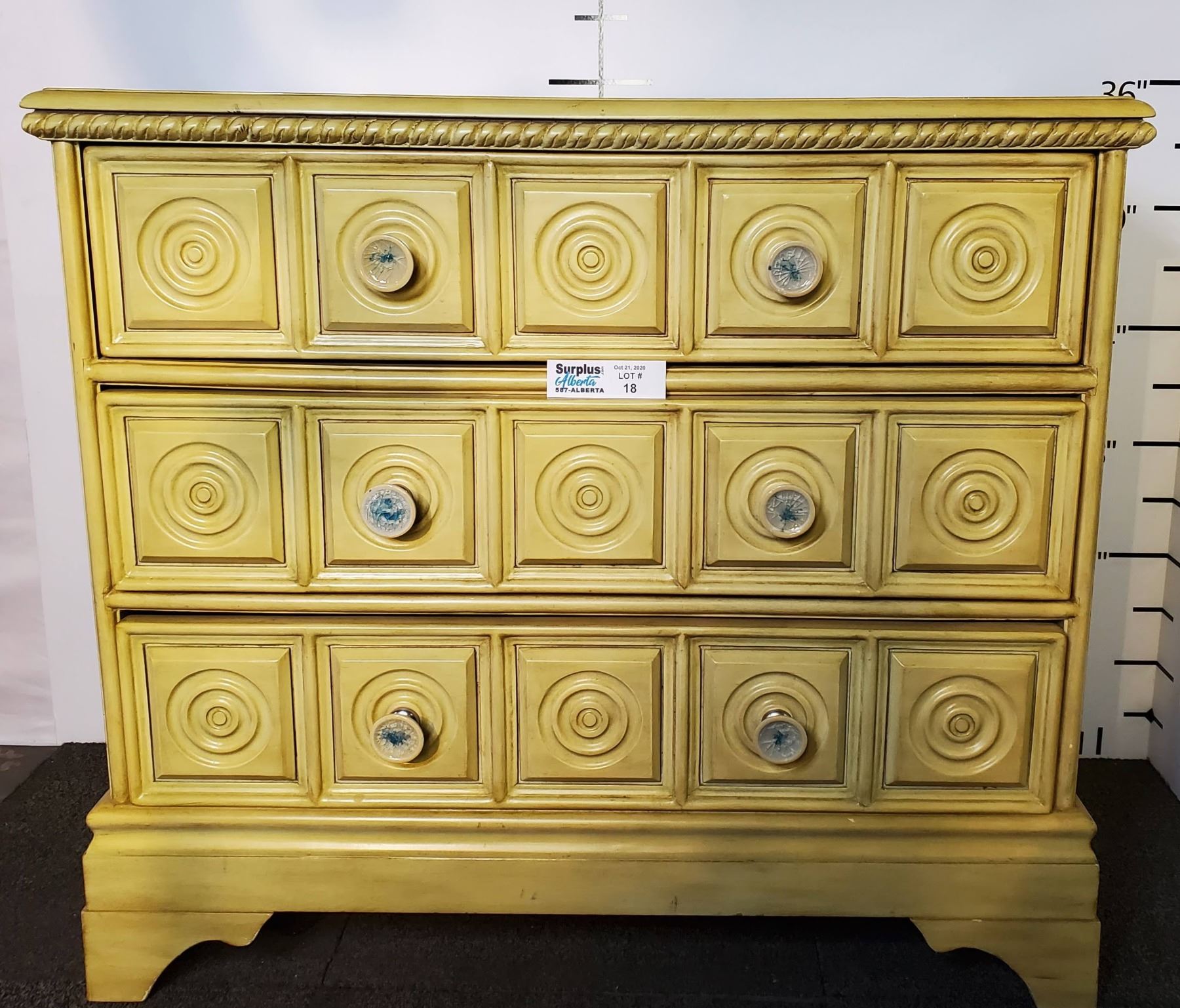 Yellow 3 Drawer Wooden Dresser